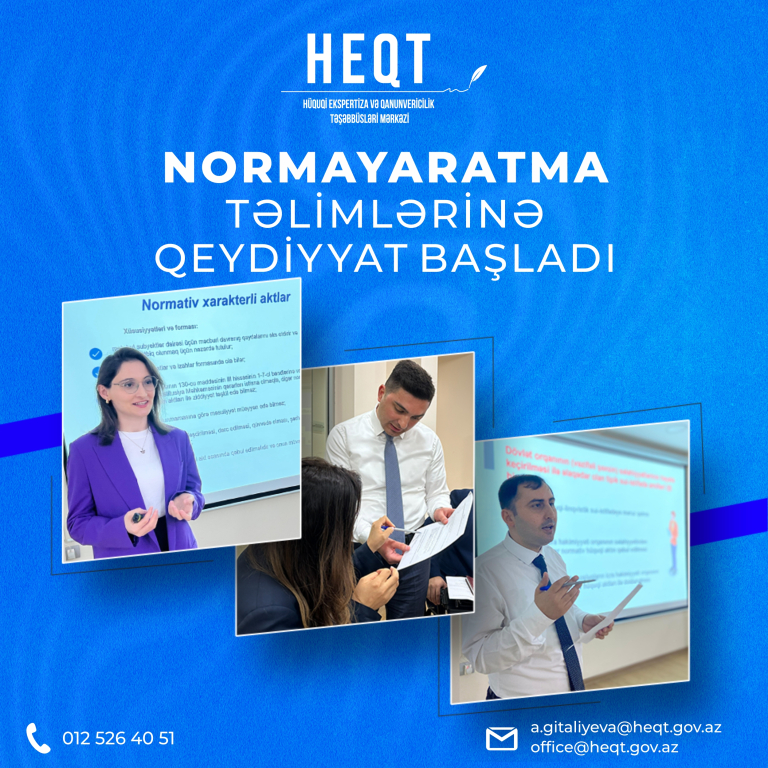 Hüquqi Ekspertiza və Qanunvericilik Təşəbbüsləri Mərkəzi tərəfindən keçiriləcək normayaratma təlimləri barədə elan
